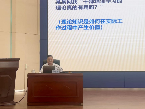 開班第一課,惠州市委黨校二級(jí)調(diào)研員邱國(guó)耀對(duì)學(xué)習(xí)貫徹黨的二十屆四中全會(huì)精神進(jìn)行宣講。他緊扣《建議》,從“四個(gè)材料”“三個(gè)關(guān)系”方面介紹會(huì)議概況,深入淺出地講解了“十五五”時(shí)期的時(shí)代背景、歷史方位,系統(tǒng)解讀了全會(huì)精神的核心要義,特別是對(duì)“發(fā)展新質(zhì)生產(chǎn)力”“科技創(chuàng)新與產(chǎn)業(yè)升級(jí)”等戰(zhàn)略部署的解讀,對(duì)推動(dòng)國(guó)有企業(yè)高質(zhì)量發(fā)展具有很強(qiáng)的指導(dǎo)意義。此外,邱國(guó)耀還從理論層面入手,對(duì)意識(shí)形態(tài)工作展開分析,闡述了意識(shí)形態(tài)的基本概念、本質(zhì)特征及現(xiàn)實(shí)意義等,切實(shí)增強(qiáng)大家對(duì)意識(shí)形態(tài)工作極端重要性的認(rèn)識(shí)。