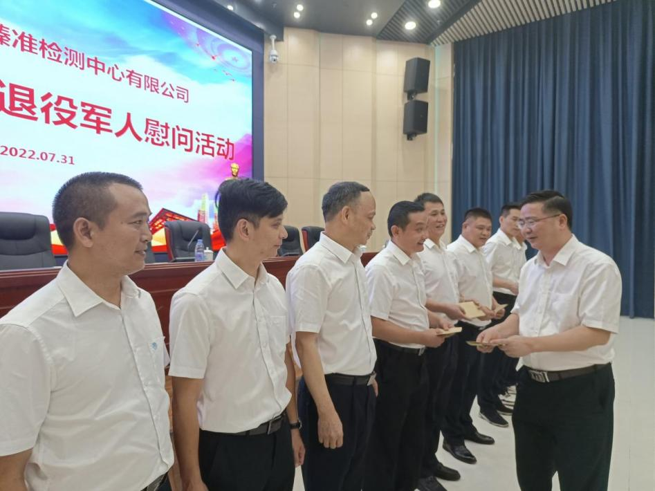檢測中心黨支部書記、董事長李小鴻代表中心向退役軍人員工送上節(jié)日問候并發(fā)放慰問金,感謝他們服兵役時(shí)保家衛(wèi)國、英勇戰(zhàn)斗、無私奉獻(xiàn),贊揚(yáng)他們退伍復(fù)員后到企業(yè)繼續(xù)發(fā)揚(yáng)服從命令聽指揮的部隊(duì)精神和沖鋒一線、吃苦耐勞的革命精神。