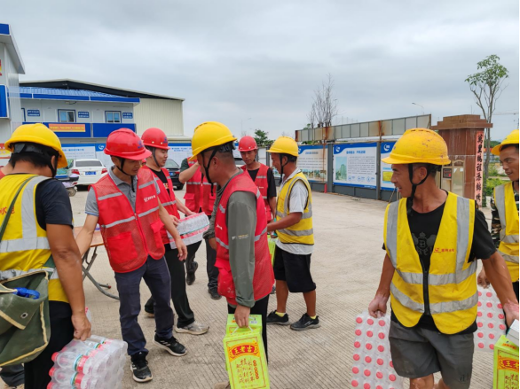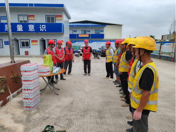 為切實做好防暑降溫工作,保障一線建設(shè)者的健康安全,5月28日上午,由市水電公司承建的宏達(dá)路(惠大高速至一號公路段)工程(一期)臨時黨支部聯(lián)合項目部,在施工現(xiàn)場開展“夏日送清涼”慰問活動,為奮戰(zhàn)在高溫下的工人們送去黨組織的關(guān)懷與夏日的清涼。